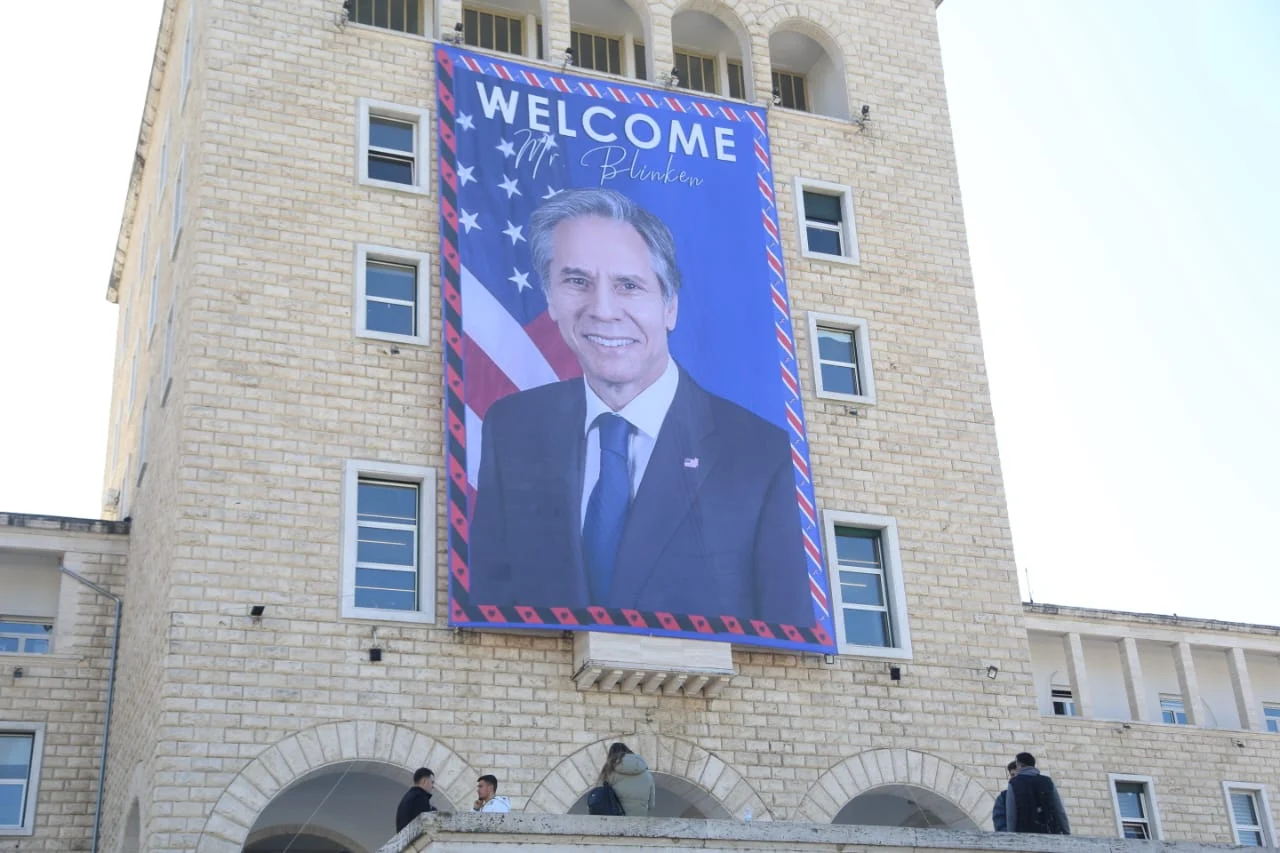 Vendosja e këtij posteri në korpusin universitar me mbishkrimin “Mirësevjen Zoti Blinken” përfshi ekranet në çdo kryqëzim të kryeqytetit si dhe flamujt amerikan e ata shqiptarë në të gjithë gjatësinë e Bulevarit Dëshmorët e Kombit, janë pjesa e dukshme e përgatitjeve për të mik-pritur të 6 shtin, sekretar amerikan shteti.