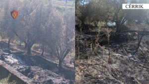 Gostimë, Cërrik/I vuri zjarrin një sipërfaqeje toke të mbjellë me ullinj, në pronësi të 2 shtetasve të tjerë, vihet në pranga 61-vjeçari.